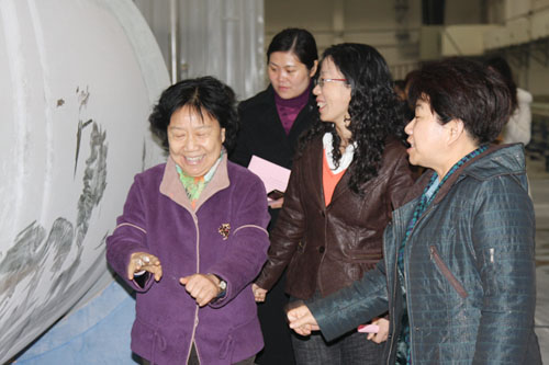 于麗華副主任一行在二分廠八號(hào)車(chē)間實(shí)地參觀。任桂芳董事長(zhǎng)首先向來(lái)賓們表示節(jié)日的問(wèn)候,并向她們介紹了中復(fù)連眾風(fēng)力發(fā)電機(jī)葉片生產(chǎn)和研發(fā)情況。經(jīng)過(guò)全體員工的不懈努力,中復(fù)連眾已于去年年底成為國(guó)內(nèi)兆瓦級(jí)的單打冠軍,2008年中復(fù)連眾將繼續(xù)響應(yīng)國(guó)家發(fā)展清潔可再生資源的號(hào)召,乘勝追擊、繼續(xù)努力,尊重人才、重視創(chuàng)新,完成2008年生產(chǎn)700套風(fēng)力發(fā)電機(jī)葉片的目標(biāo),繼續(xù)重視企業(yè)管理,為人才提供良好的發(fā)展空間。