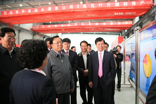 2010年5月12日,酒泉國家風(fēng)電裝備高新技術(shù)產(chǎn)業(yè)化基地正式掛牌,標(biāo)志著甘肅新能源基地建設(shè)進(jìn)入了一個(gè)新的階段。甘肅省委書記、省人大常委會主任陸浩出席掛牌儀式并為基地揭牌,省委副書記、省長徐守盛也參加了儀式。隨后陸浩、徐守盛在中國復(fù)合材料集團(tuán)有限公司董事長兼總經(jīng)理張定金的陪同下視察了中復(fù)連眾酒泉葉片基地。