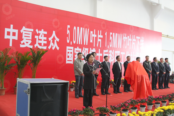中國建材集團董事長宋志平,連云港市委書記、市人大主任王建華,連云港市政府市長徐一平,中國風能專業(yè)委員會秘書長秦海巖,中國建材集團副總經(jīng)理馬建國,連云港市委常委張光東、唐國海、副市長施炎,江蘇省人力資源和社會保障廳專家和國際合作處處長金凡,中國復合材料集團有限公司董事長、總經(jīng)理張定金出席慶典儀式。中國復合材料集團有限公司副總經(jīng)理、中復連眾董事長任桂芳主持儀式。