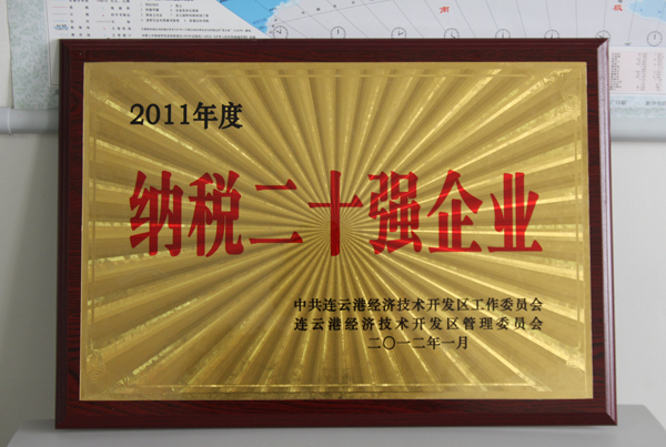 中復(fù)連眾喜獲連云港開發(fā)區(qū)納稅二十強(qiáng)榮譽(yù)稱號(hào)
