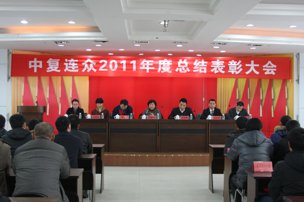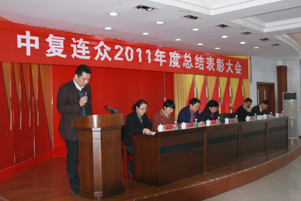 玉兔呈祥辭舊歲,金龍獻(xiàn)瑞迎新春。1月20日,中復(fù)連眾隆重舉行2011年度總結(jié)表彰大會(huì)??偨?jīng)理喬光輝作年度工作報(bào)告,董事長(zhǎng)任桂芳在會(huì)上作重要講話,公司所有管理人員、車間班組長(zhǎng)以上人員參加了會(huì)議。會(huì)議由副總經(jīng)理南洋主持。