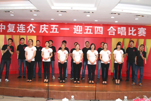 4月30日,中復連眾“慶五一迎五四”合唱比賽拉開帷幕?;顒佑晒军h委、團委聯合舉辦,按照抽簽順序,6個支部輪番上陣,演唱了《年輕的朋友來相會》、《歌唱祖國》、《眾人劃槳開大船》、《真心英雄》等12首經典歌曲。經過激烈角逐,三支部憑借《大中國》、《光陰的故事》最后突圍,總得分96.5分,超過第二名0.2分,最終奪冠。
