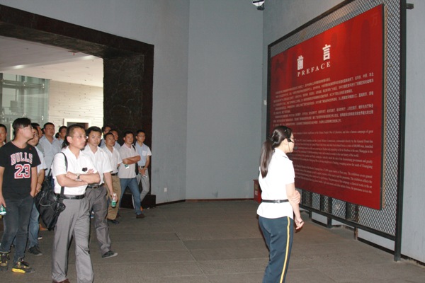在整個參觀中,大家感受最深刻的是淮海戰(zhàn)役的勝利是人民的勝利。在整個戰(zhàn)役中,華東、中原、華北解放區(qū)黨政軍民共同譜寫了淮海戰(zhàn)役勝利的光輝篇章。543萬民工、20.6萬副擔(dān)架、88.1萬輛大小車、運糧9.6億斤、彈藥300萬噸,轉(zhuǎn)運傷員9.8萬余名,動員10萬子弟參軍……人民為淮海戰(zhàn)役的勝利做出了無法估量的偉大勝利。