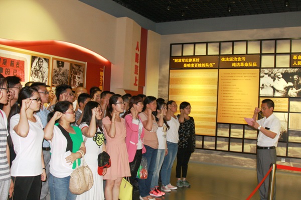 在淮海戰(zhàn)役廉政教育專題展廳,黨員代表握緊拳頭、舉起右手,莊嚴(yán)的重溫入黨誓詞。大家紛紛表示,淮海戰(zhàn)役的勝利證明,贏得人民信任,我們黨就能無往而不勝,得到人民的支持,我們黨就能克服任何艱難險阻。先輩們崇高堅定的信仰、艱苦奮斗的精神、清正廉潔的作風(fēng),密切聯(lián)系群眾的優(yōu)良傳統(tǒng),將引領(lǐng)我們不斷創(chuàng)造新的業(yè)績。