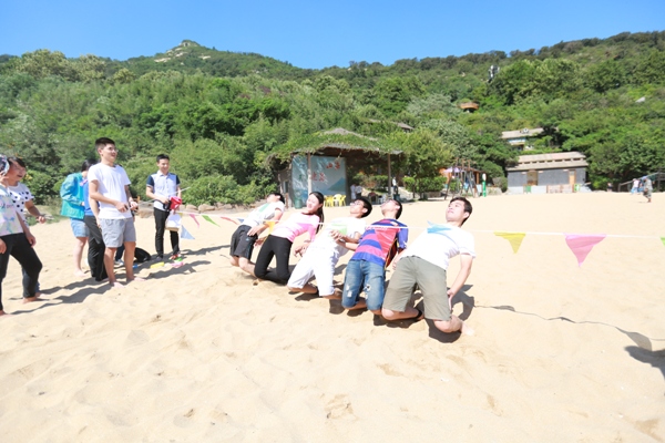藍天、白云、沙灘,秋高氣爽,海景宜人。8月27日,中復連眾迎新活動在美麗的蘇馬灣海濱浴場舉行,34名新老員工在金色的沙灘上進行了袋鼠跳看圖猜成語、團隊障礙接力賽和下腰挑戰(zhàn)賽三個競技比賽項目,整個活動現(xiàn)場氣氛活躍,笑聲連連。