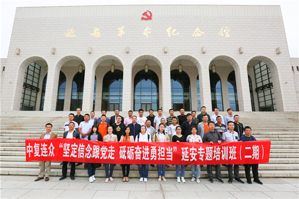 9月9日至10日,中復(fù)連眾在革命圣地延安開(kāi)展第二期“堅(jiān)定信念跟黨走 砥礪奮進(jìn)勇?lián)?dāng)”的專題培訓(xùn)班,在公司黨委委員欒立國(guó)的帶領(lǐng)下,來(lái)自中復(fù)連眾本部及所屬公司的40名黨員干部參加培訓(xùn)。這次培訓(xùn)班是學(xué)習(xí)貫徹習(xí)近平新時(shí)代中國(guó)特色社會(huì)主義思想和黨的十九大精神的實(shí)際行動(dòng),也是落實(shí)集團(tuán)黨委“不忘初心 牢記使命”主題教育部署的具體舉措。