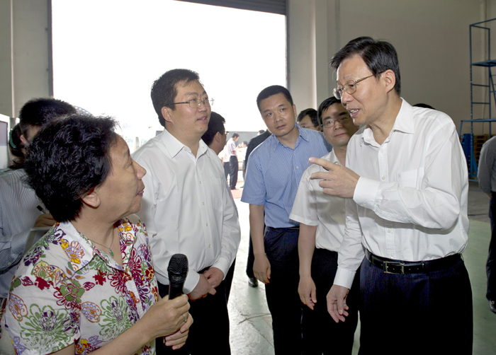 6月7日上午,在連云港市市長(zhǎng)楊省世,市委常委、連云港經(jīng)濟(jì)技術(shù)開(kāi)發(fā)區(qū)黨工委書記關(guān)永健的陪同下,江蘇省省長(zhǎng)李學(xué)勇冒雨前往中復(fù)連眾,視察中復(fù)連眾科技創(chuàng)新情況。中國(guó)復(fù)材集團(tuán)副總經(jīng)理、中復(fù)連眾董事長(zhǎng)任桂芳,中復(fù)連眾總經(jīng)理喬光輝向李學(xué)勇省長(zhǎng)做了匯報(bào)。