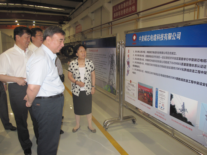 8日,宋志平董事長一行冒雨視察了中復(fù)連眾碳芯電纜項目和葉片全尺寸檢測中心。在碳芯電纜試生產(chǎn)車間,中復(fù)連眾董事長任桂芳向宋董事長匯報了碳芯電纜項目的進(jìn)展情況。碳芯電纜具有耐高溫、熱膨脹系數(shù)小、耐腐蝕、輸送容量大、線損小等一系列優(yōu)異性能,是傳統(tǒng)鋼芯鋁絞電纜的更新?lián)Q代產(chǎn)品,具有很強(qiáng)的經(jīng)濟(jì)效益和社會效益。作為中復(fù)連眾今年重點(diǎn)建設(shè)項目,碳芯電纜項目已于2月29日奠基,目前各項工作都在緊張有序進(jìn)行,今年年底一期工程建成投產(chǎn),預(yù)計完全達(dá)產(chǎn)后年產(chǎn)復(fù)合材料電纜芯及電纜20000千米。試生產(chǎn)已經(jīng)取得階段性勝利,6月14日和21日,分別在連云港化茅線改造工程和常州市德勝線改造工程中架線安裝,并于當(dāng)日通電運(yùn)行。