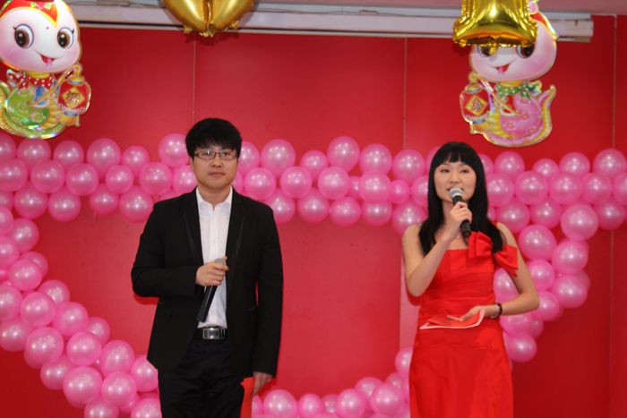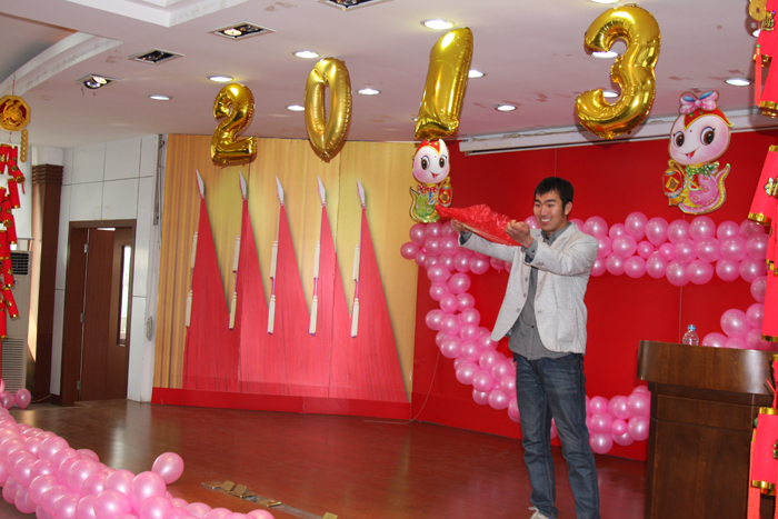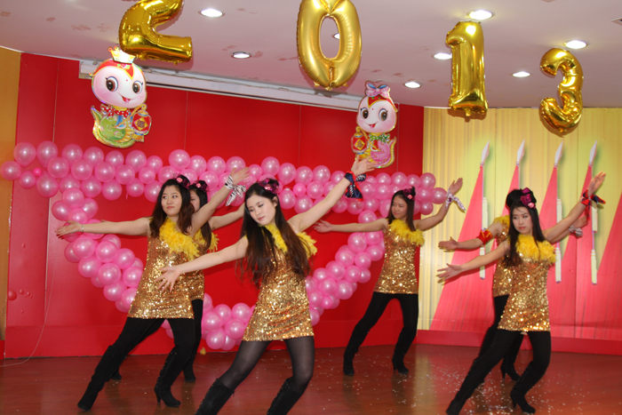 聯(lián)歡會(huì)在管罐營(yíng)銷部范賢浩MJ獨(dú)舞《DANGEROUS》中精彩開幕,掀起一個(gè)小高潮;信息管理部周福超一曲《青花瓷》委婉動(dòng)聽,帶我們感受中國(guó)風(fēng)的魅力;范賢浩和信息部張哲寧踏著《Dreams come true》的節(jié)奏,給觀眾不一樣的精彩;管罐營(yíng)銷部陳冠升傾情演繹了劉歡《我和你》、楊坤《無(wú)所謂》和汪峰《我愛你中國(guó)》經(jīng)典歌曲,模仿精彩到位、惟妙惟肖。贏得全場(chǎng)最高分貝尖叫的當(dāng)屬財(cái)務(wù)部蘇茗茗,她的獨(dú)舞《十分鐘》,揮灑自如,酷勁十足,新一代 “舞后”應(yīng)運(yùn)而生;葉片營(yíng)銷部王睿妍、管罐國(guó)際部吳瑜和范賢浩分別帶來(lái)了德文歌曲《即使在雨中》、俄文歌曲《喀秋莎》和韓文歌曲《大長(zhǎng)今主題曲》,讓我們感嘆中復(fù)連眾真是藏龍臥虎地;功夫不負(fù)有心人,經(jīng)過(guò)一個(gè)多月的辛苦排練,黃偉、潘慧等六位美女的舞蹈《SMILE》,終于贏得了陣陣喝彩;郭偉、孫誠(chéng)的歌曲《溫柔》,配合默契,唱功一流;由李成威、劉世民、譚倩倩、張丹表演的《拜年》講述了一對(duì)小夫妻回家拜年的爆笑經(jīng)歷,笑料十足;聯(lián)歡會(huì)在《恭喜發(fā)財(cái)》中落下帷幕。